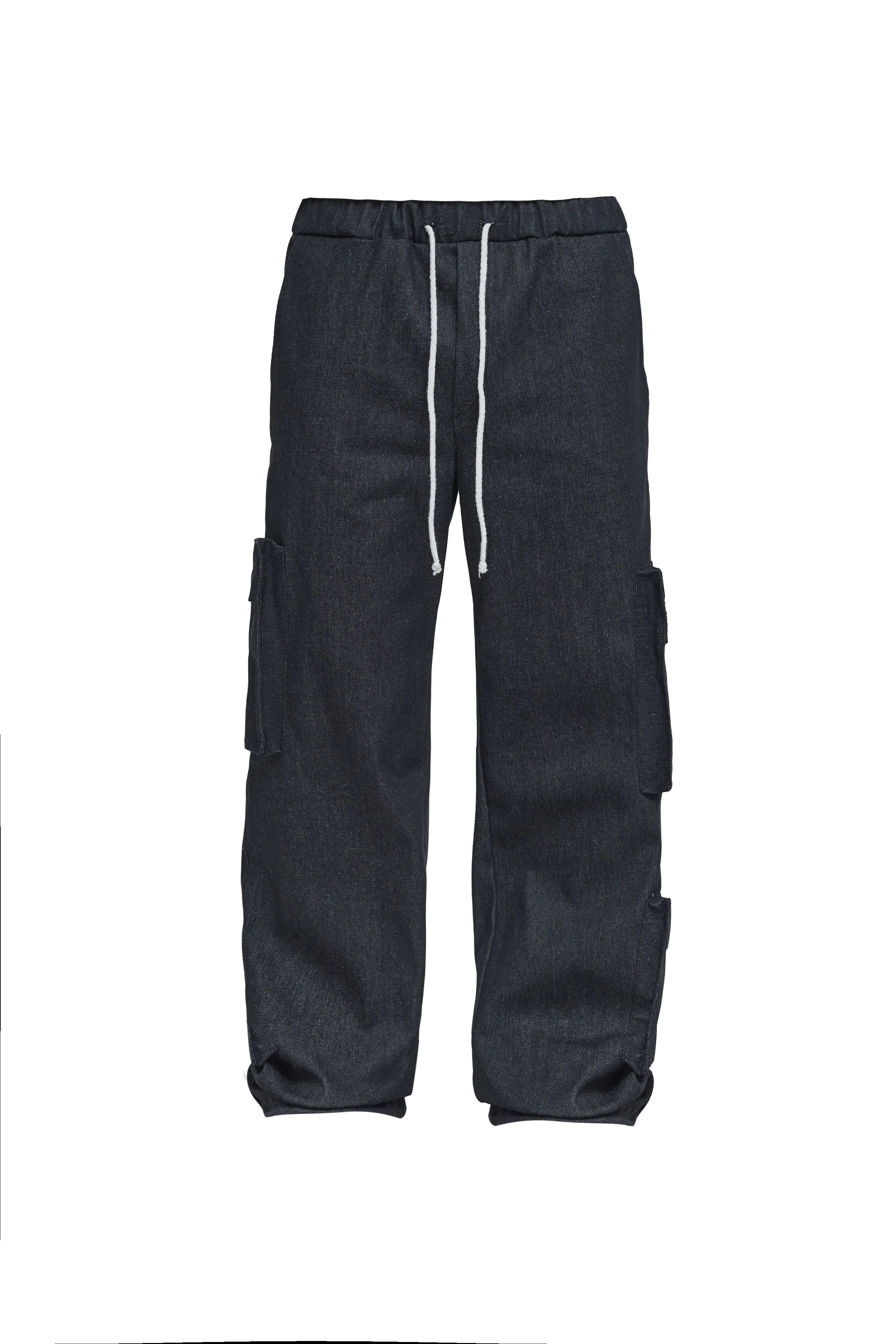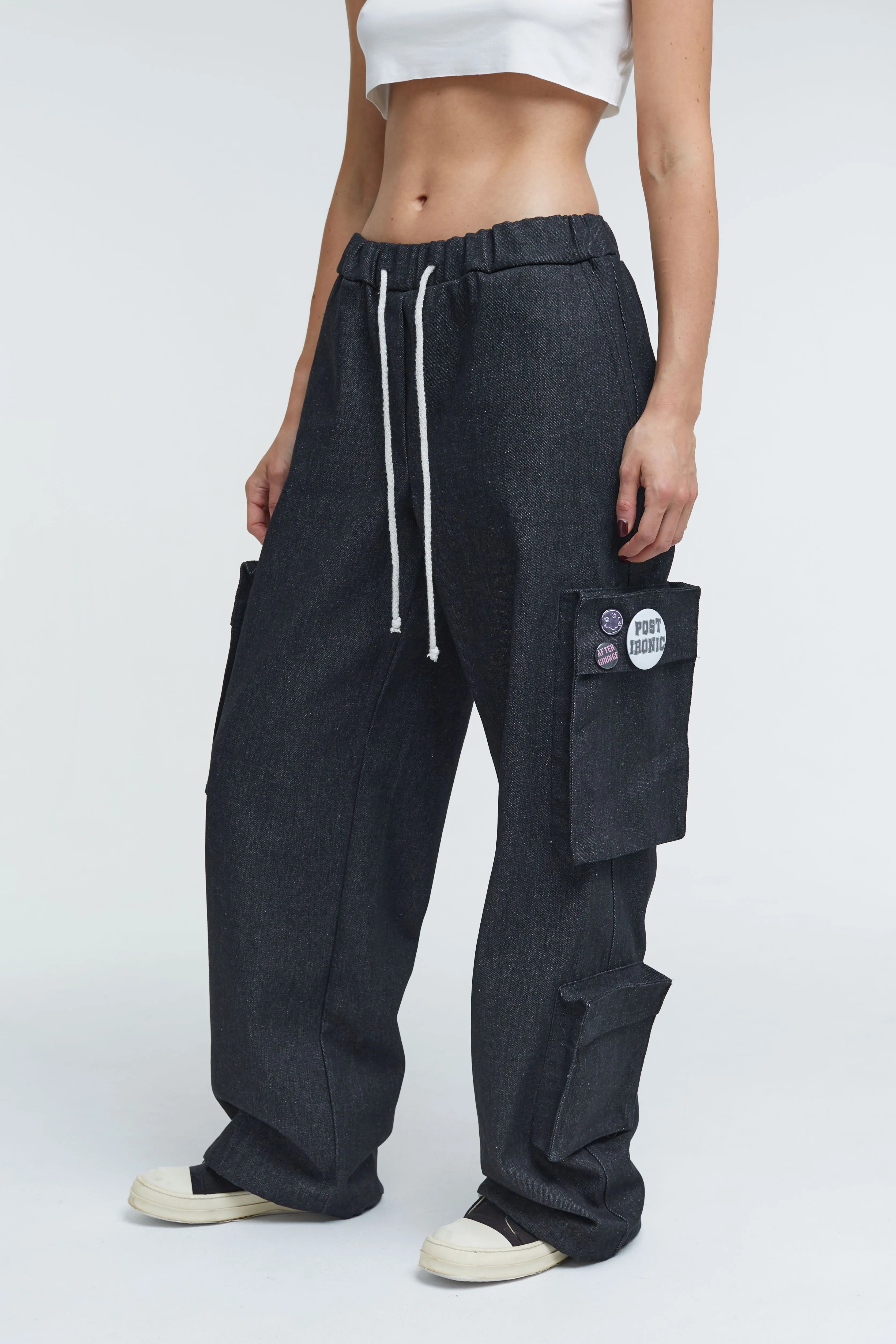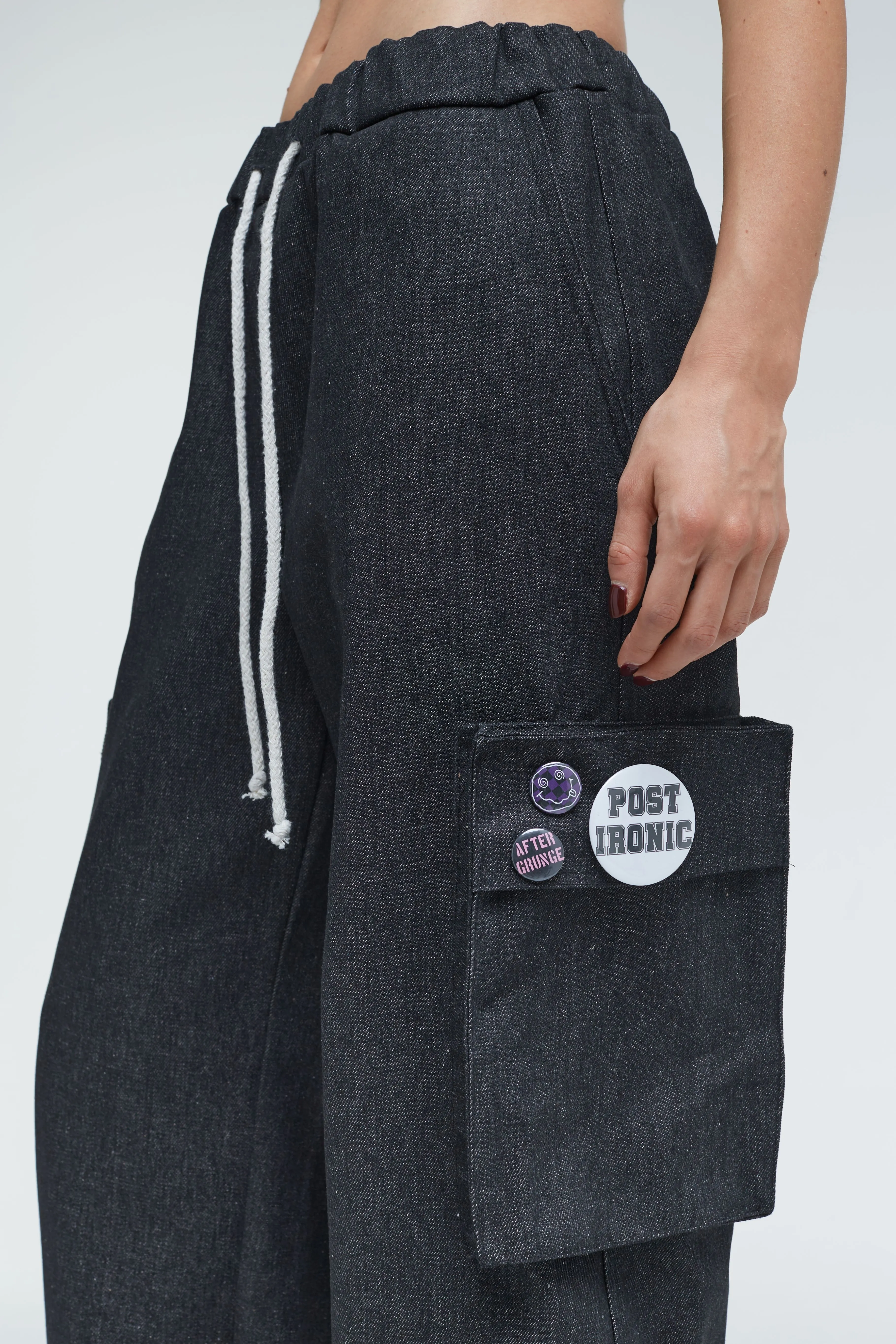 Черные брюки-карго. Модель свободного кроя выполнена из плотного прочного хлопка. Небрежный силуэт имитирует рабочую униформу.