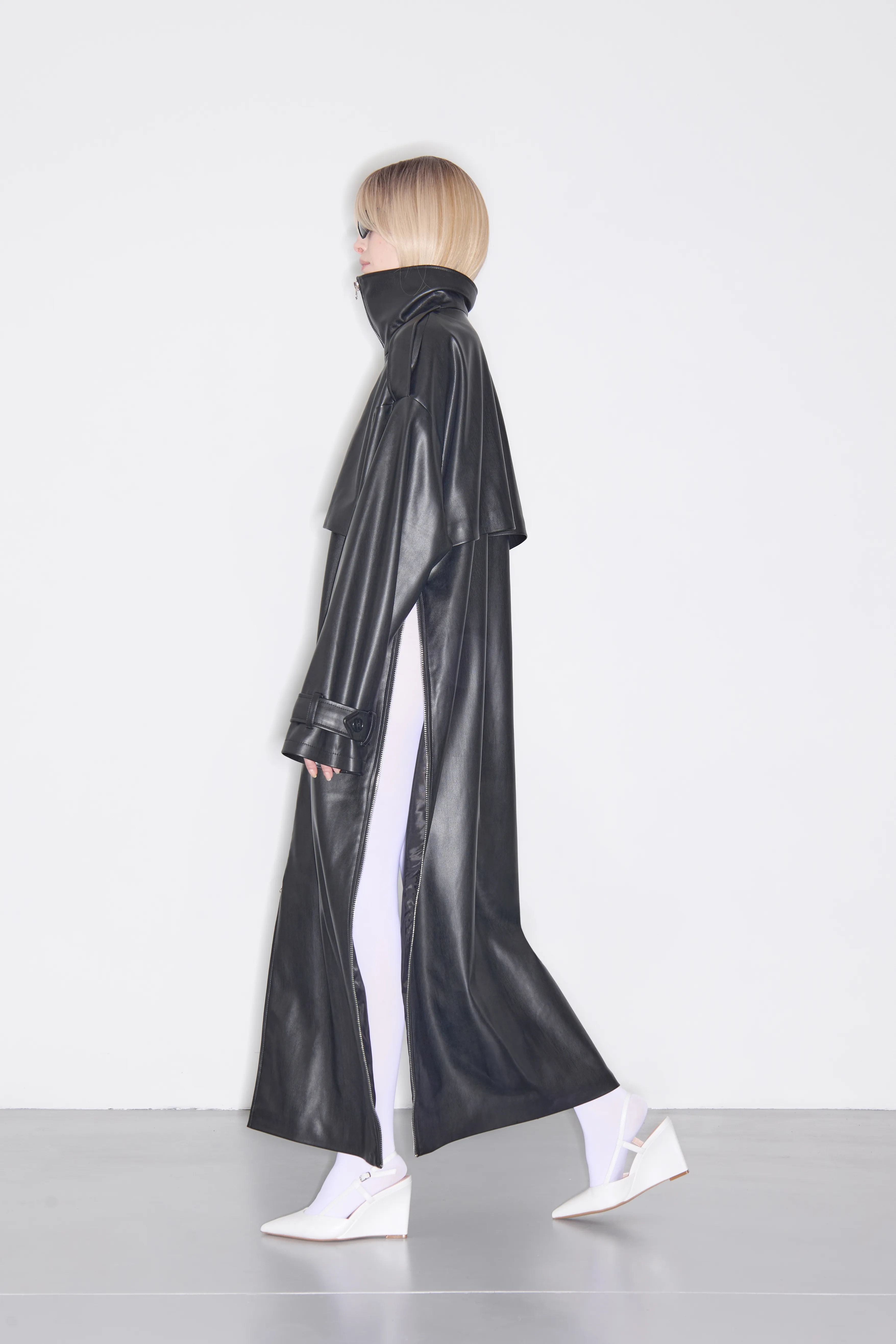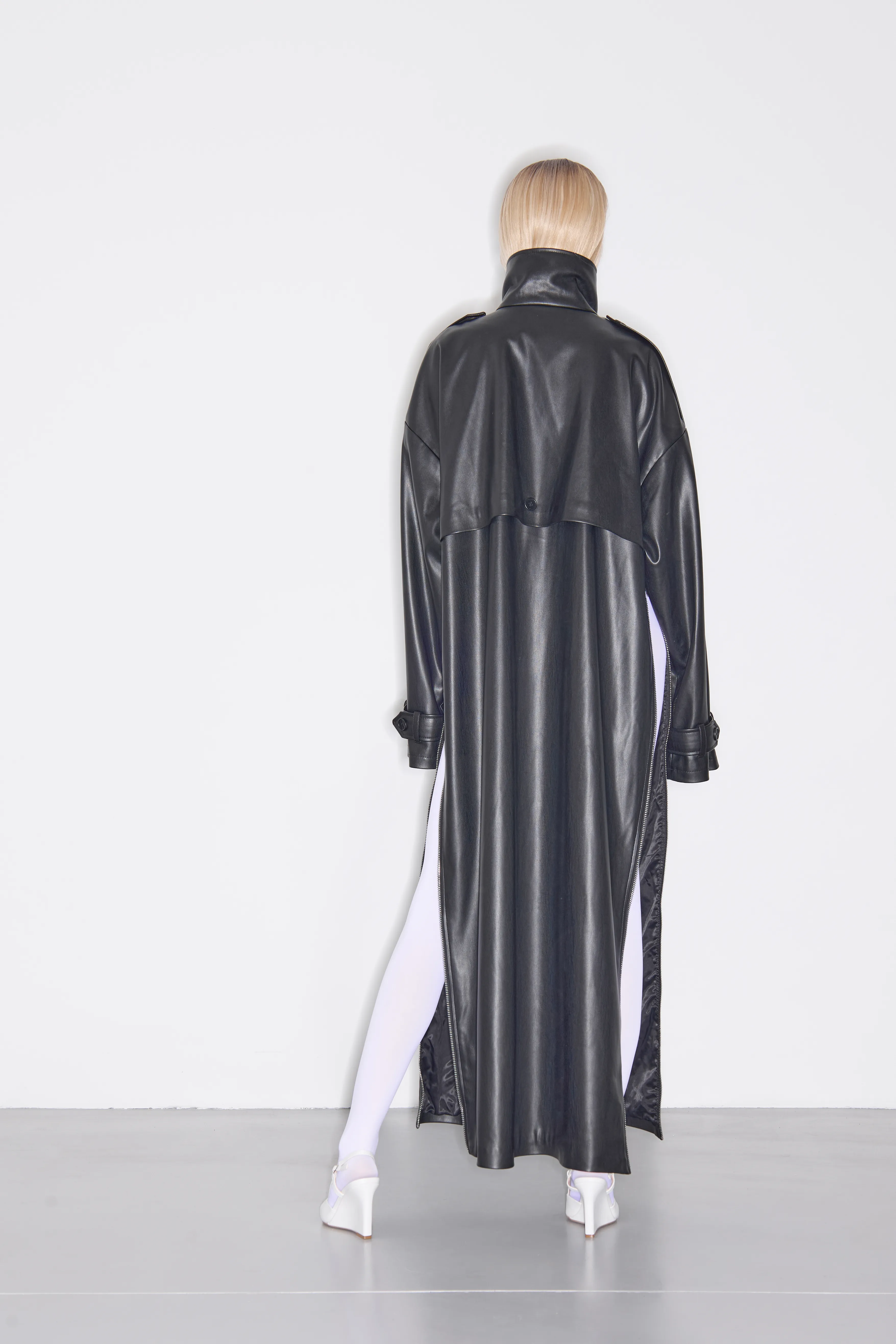 Тренч из экокожи с молниям