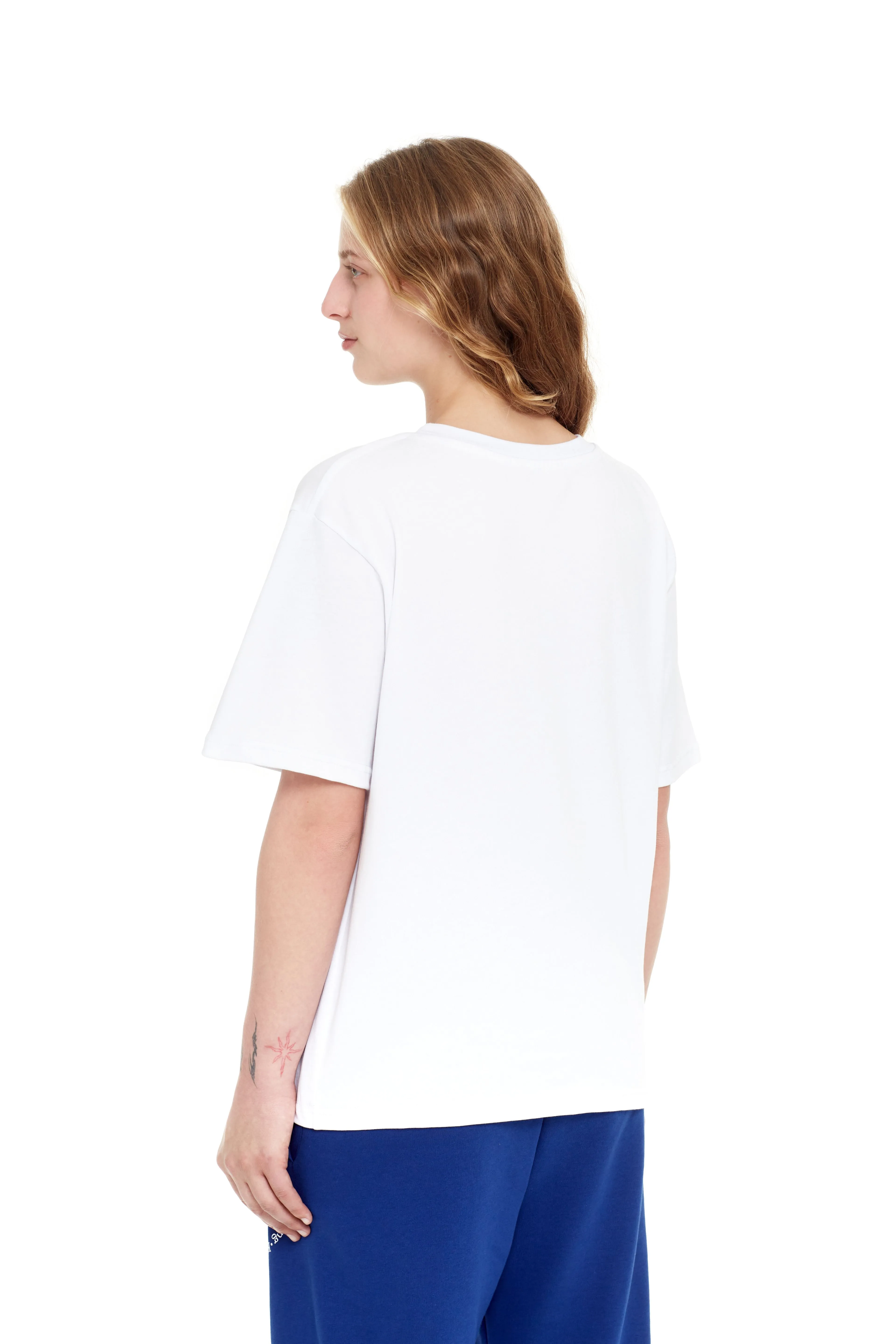 Футболка из плотного хлопка с крупным принтом в виде логотипа бренда на груди. Модель свободного кроя, с круглым горловым вырезом и короткими рукавами.