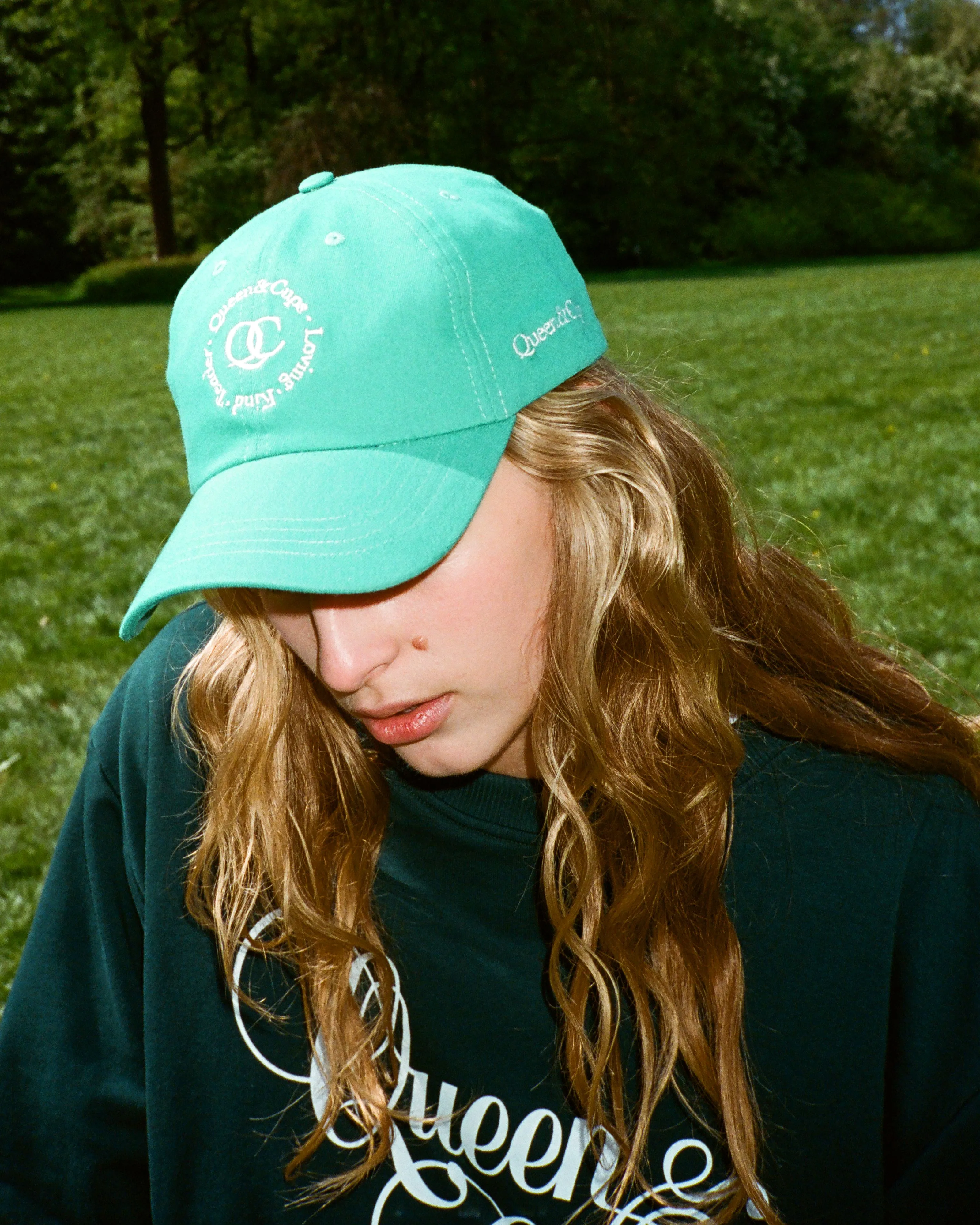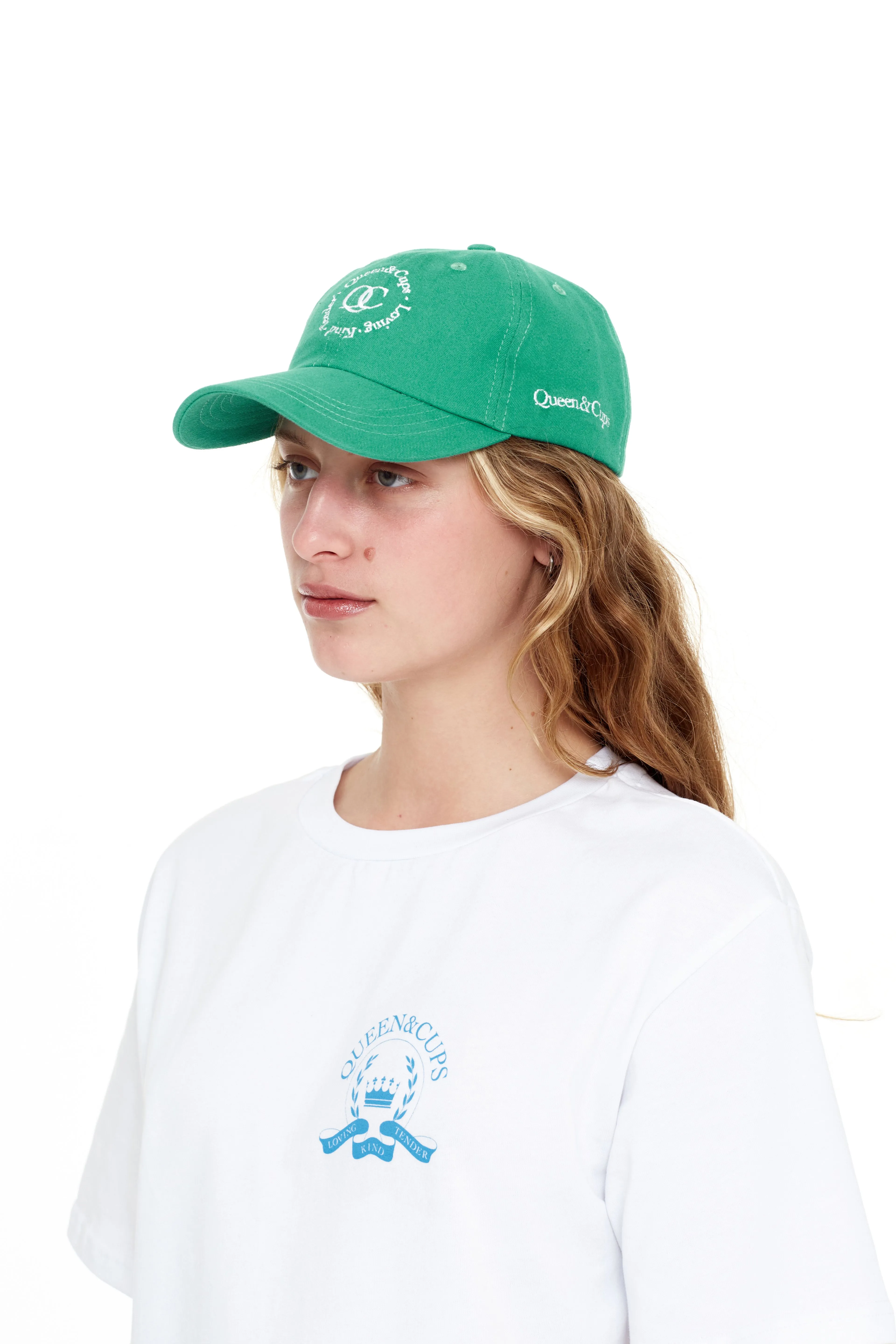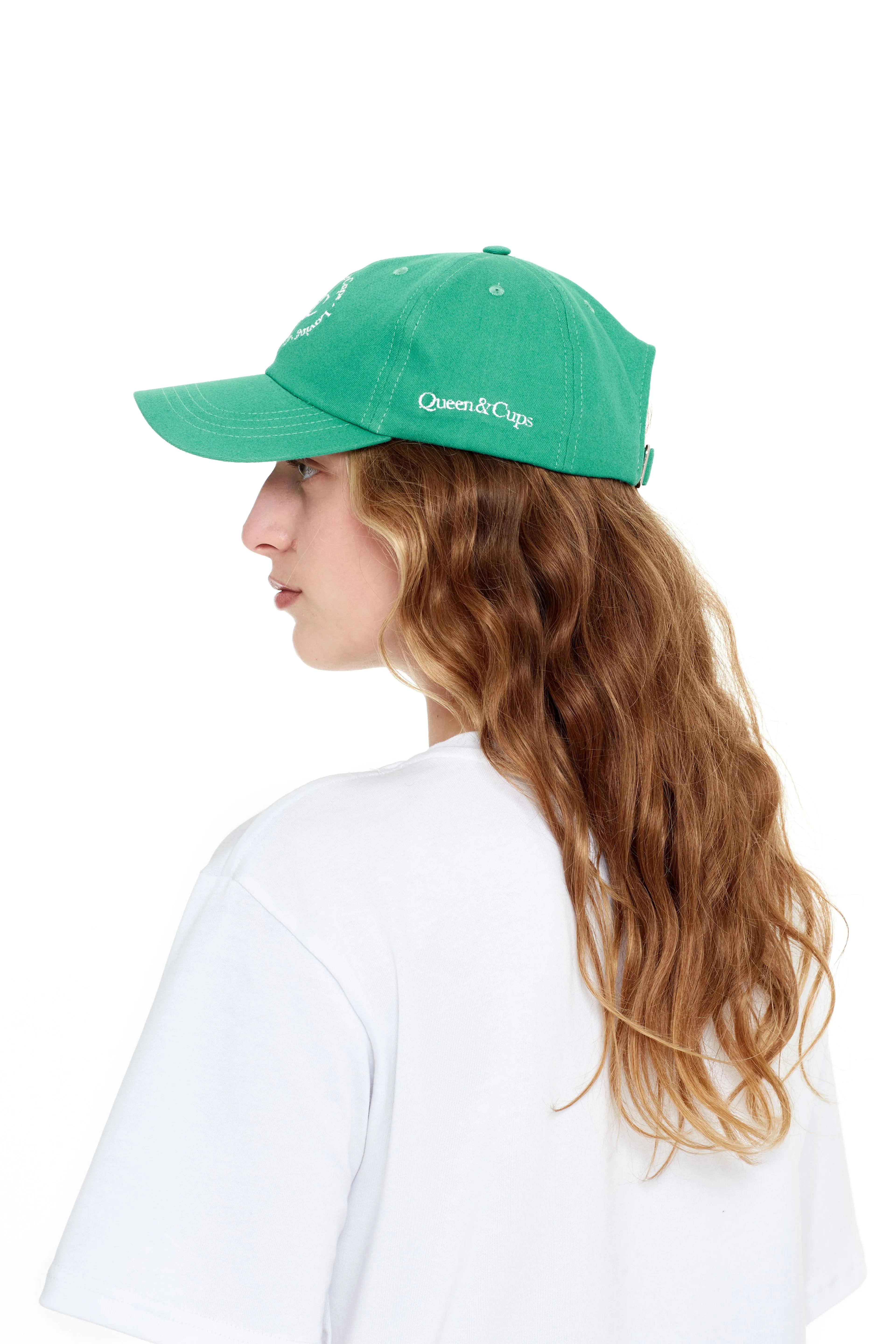 Кепка из хлопка с крупной вышивкой спереди и небольшой вышивкой сбоку. Прошитый козырек и ремешок для регулировки размера. Вышивка в виде логотипа бренда, дополненного слоганом «Loving. Kind. Tender».