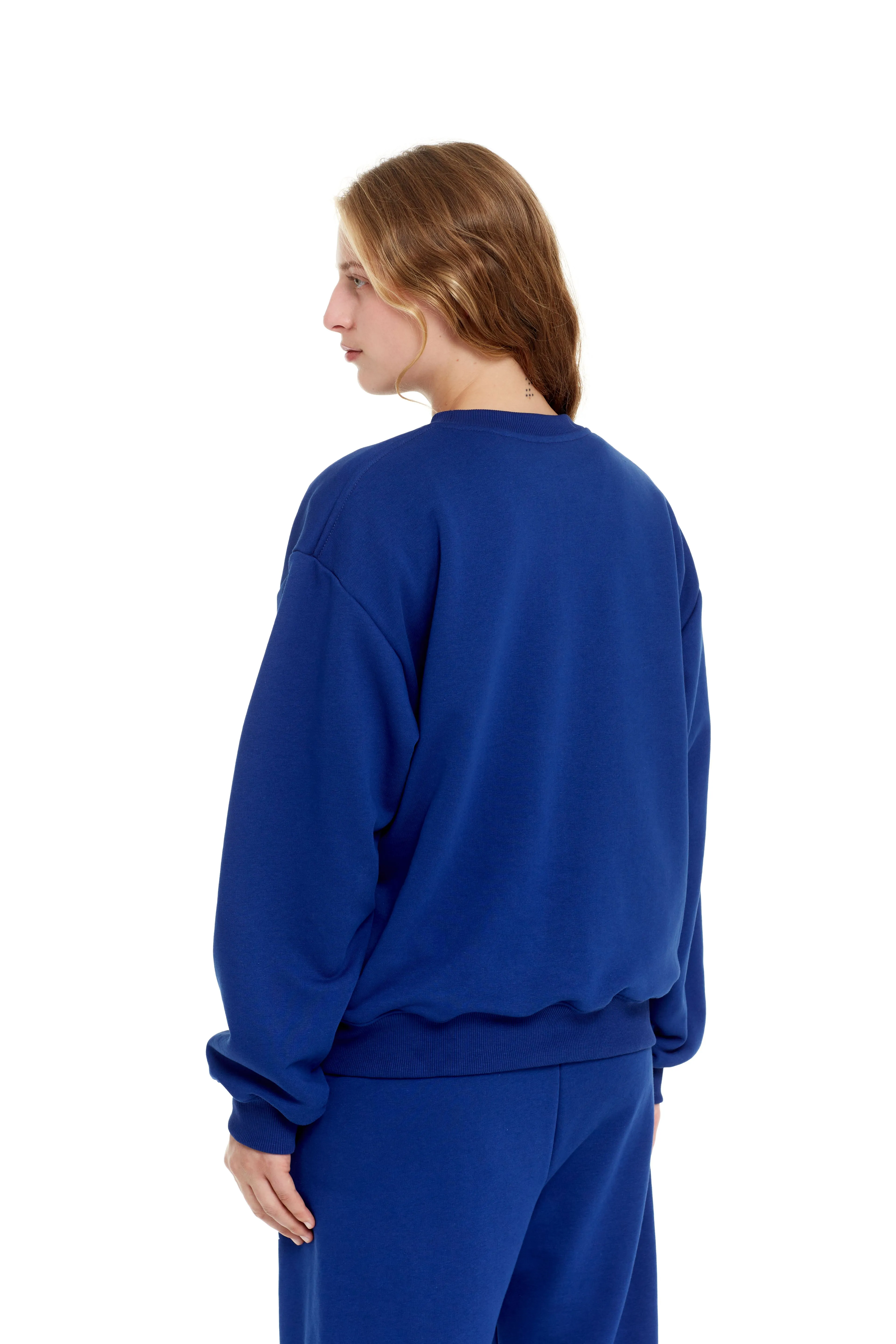Свитшот из хлопка с добавлением искусственных волокон с небольшим принтом на груди. Модель свободного кроя с круглым горловым вырезом, эластичными манжетами и длинными рукавами.